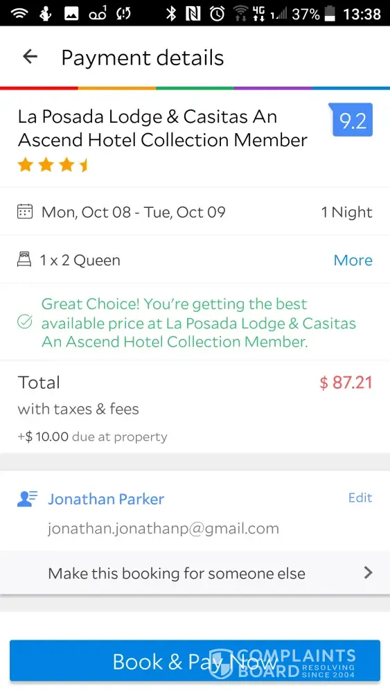 Stay date: Arrived October 5, 2018 for one night on confirmation # [protected] and arrived October 5, 2018, for one night stay and parking for 7 nights for confirmation #[protected].