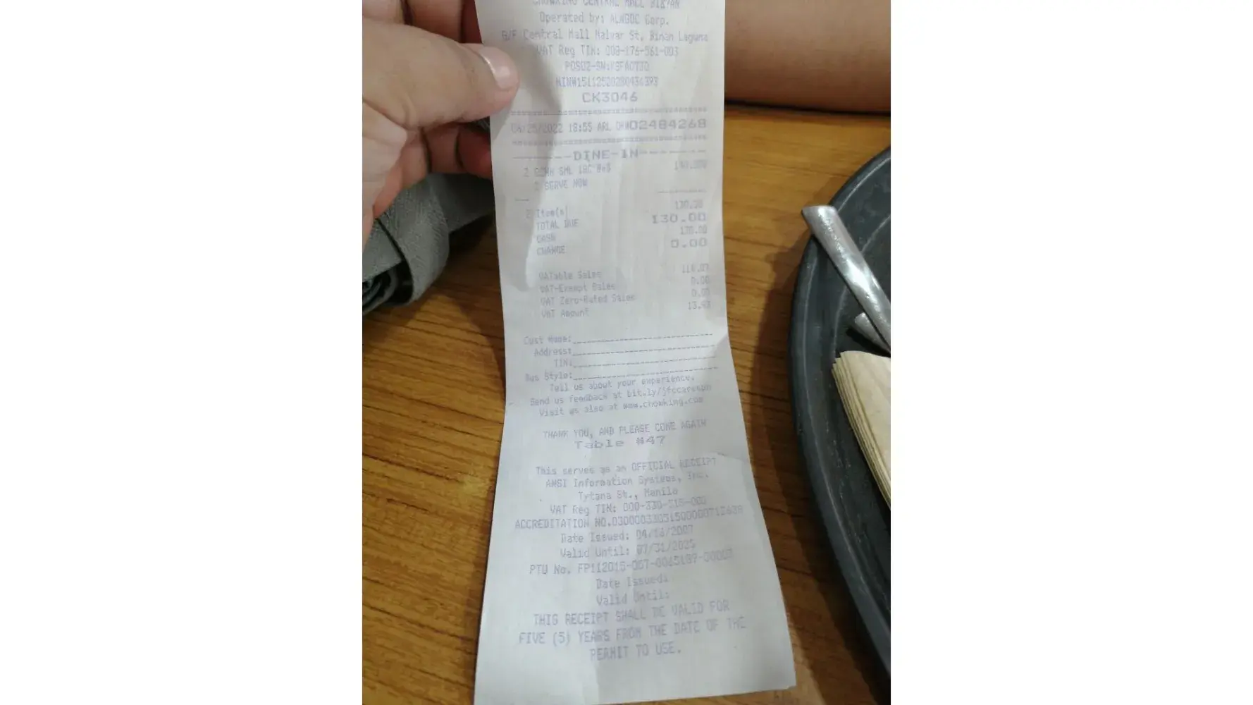 nag dine kami sa chowking abanao baguio city last june 20, 2022 at 5:45pm and ordered 1CSFC and requested na leg part ang ibigay since bata ang kakain at iyon ang gusto sabi ng cashier basta willing to wait for 20-30 minutes and we said yes sa sobrang tagal na nag antay still hindi legs ang binigay kundi breast part na ayaw nang kainin ng bata kung sa simula palang sinabi na sana nila na wala silang legs di sana iniba na namin ung order ng bata or kumain kami sa iba and ang isa pa na iorder namin is beef mami pero nung naiserve na hindi man lang maenjoy ang sabaw dahil sa sobrang lamig na and we also ordered siopao, is it true na face out n ang sauce ng siopao niyo and we requested ice tea no ice bigla niyang nilagyan ng ice ung baso sabay lagay ng ice tea tsaka sasabihin ng ngserve n ayy maam nalagyan ko po ng ice and sana naman meron silang etiquette when it comes to costumer nila hindi iyong sila ang masusunod imbes na iyong order ng costumer nila