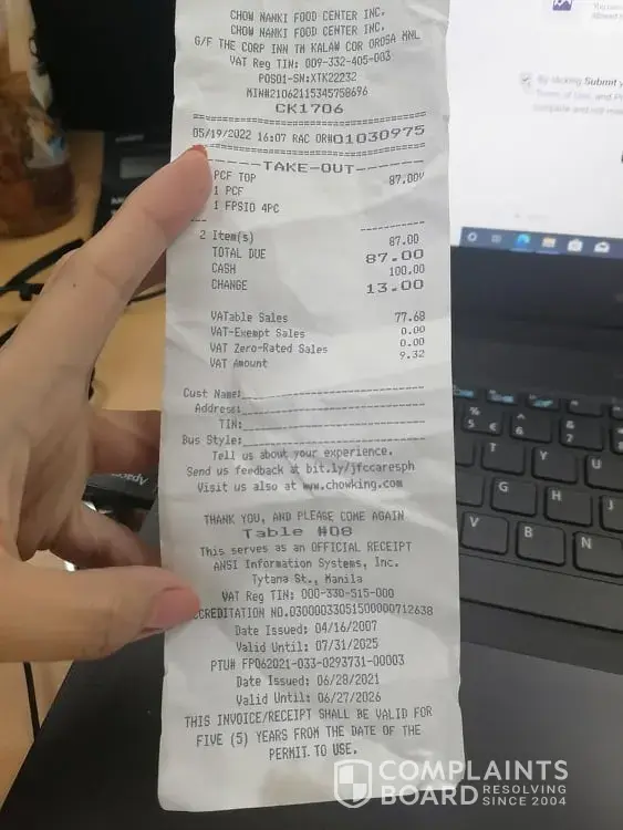 This is to provide comment as a customer that the upgrade on the rice to make it 'smokeywoktaste' is getting negative feedback on the consumers. Instead of actually tasting the smokeywok, it tastes like the rice is stale. Chowking is our go-to food for cravings but it changed when the upgrade happened. Usually we order chowking once a week - right now I cant remember when we had chowking.