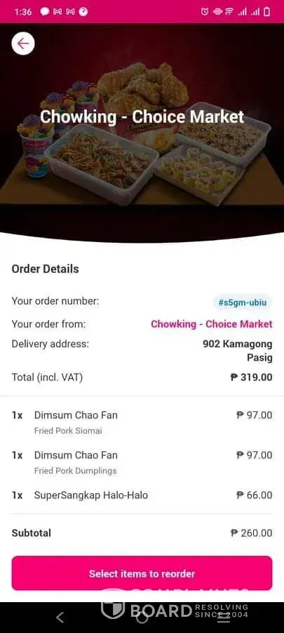 This so first I order at foodpanda and this is a chowing choice market I order food with halohalo but I didn't received the halohalo . There is also a proof shows in the receipt halohalo is now included which I pay for it I have attachements shows that I pay for it . At the same time I did not received a valid receipt from the store I walk in and tell what's happened they ask me to file it at food panda which I did and due to multiple complains I have from chowking they can't assist me .. so I pay for the food I didn't received because chowking forgot to included it without notifying the customer . And not issuing a valid receipt .. so I just passed that since it's time consuming and no one is willing to help .. and compensate or even do a necessary actions .