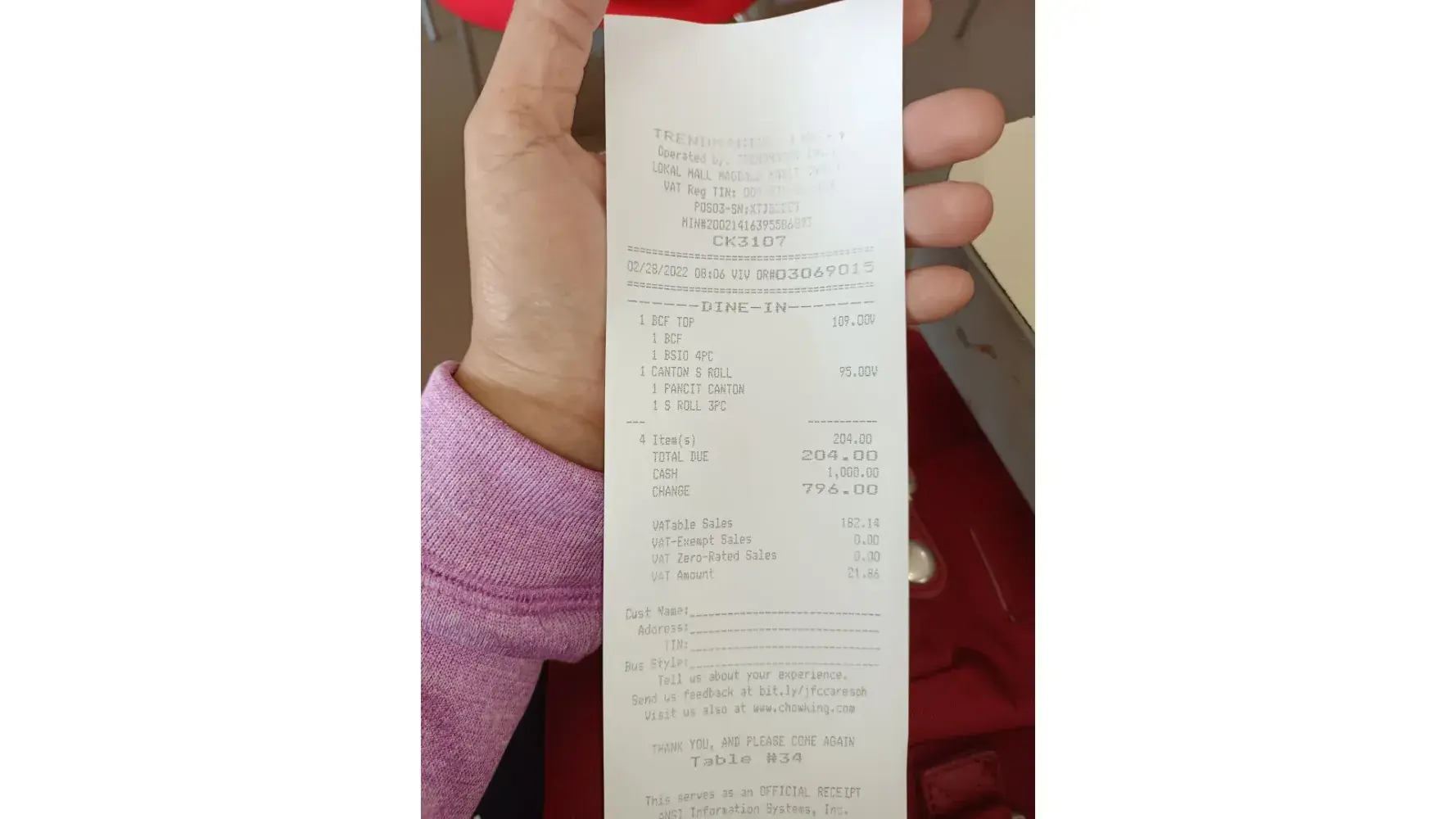 Time of incident: approximately 12:30pm Friday February 25 2022 I ordered the chao fan with a large drink and the girl charged me 250 pesos. Now the menu says the price of the chao fan is 99 pesos, so is the large drink 150 pesos? I gave her a 500 peso bill and my change was exactly 250 pesos. Is this how you treat foreigners in your country. Is there a white skin tax that i dont know about? This is so wrong in every way!