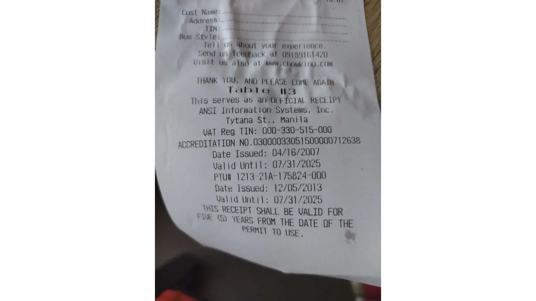 Good evening Chowking Gil Fernando Marikina, Bakit kulang yung binigay na order samin sa Drive thru? And yun receipt mamin ay wala pa samin kaya di kami makatawag sa store nyo Around 11pm tonight nagorder kami dyan sa drivethru -_- sobrang craving pa naman ako sa Chao pan with dumpling tapos wala pa yung Chicken lauriat hayst nakakainis nalang bumalik kasi from antipolo pa kami nagdrivethru nalang kami dyan dahil galing kami ng work.. Nakakadismaya kasi gutom kana tapos kulang pa pala yung order namin. Sana maideliver samin agad ito dahil tamad nadin yung asawa ko na bumalik sa store nyo at umuulan pa ngayon.