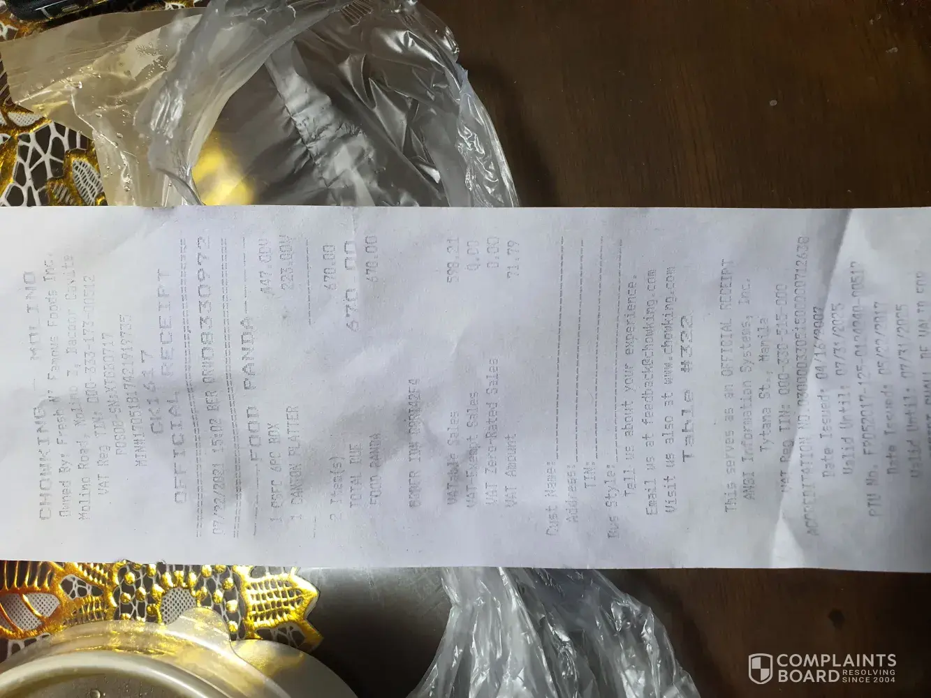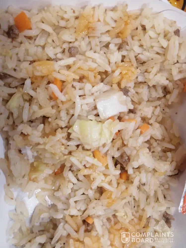 Bumili ako chaofan sa chowking Rob. Palapala July [protected]@0640 pm, nkauwi ako 0750 pm paguwi ko agad nming kakainin ung chaofan. Tpos sbi ng asawa ko pgsalin sa plato prang panid dhil mlgkit at pawis dhil pag nabili ako chaofan pagsinalin s Plato buhaghag. Sabi ko Hindi naman tpos binuklat nmin at may laway na dikit n ung kanin kya dna kinain. Kya ayun pkain nlng sa aso.