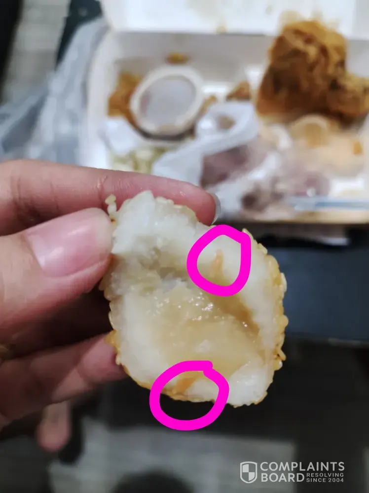 Meron pong screw yung manok ninyo! May halo siyang breeding kaya hindi gaano kahalata! Muntikan ko na po makain kanina! Bakit naman po ganun? Paano kung gutom na gutom ako at hindi namalayan? Paano po kung sa bata ito napunta? Edi baka nalunok na? Siyempre pagkain po itong services ninyo kaya isang kagat lang nasa stomach na namin ang luto ninyo and puwede ito makaapekto sa health! Hindi po ako papayag nang ganito! Ayokong maulit! Sana po mabigyan ng LESSON ang mismong branch nito! Hindie ko pa po inaaupload sa FB itong picture, dahil ayoko pong masiraan ang company ninyo😠dahil mahal na mahal ko talaga ang chowking kaya nga mismong birthday ng ate ko ay ito ang pina-order ko. Pero malaking dissapointment po ang nangyari. Sana po mabigyan kaagad ng AKSYON.