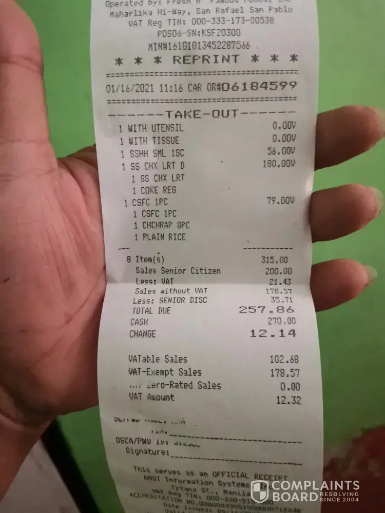 Di naman libre yung kinain ko para di ibigay yung standard n requirement para matuwa si customer