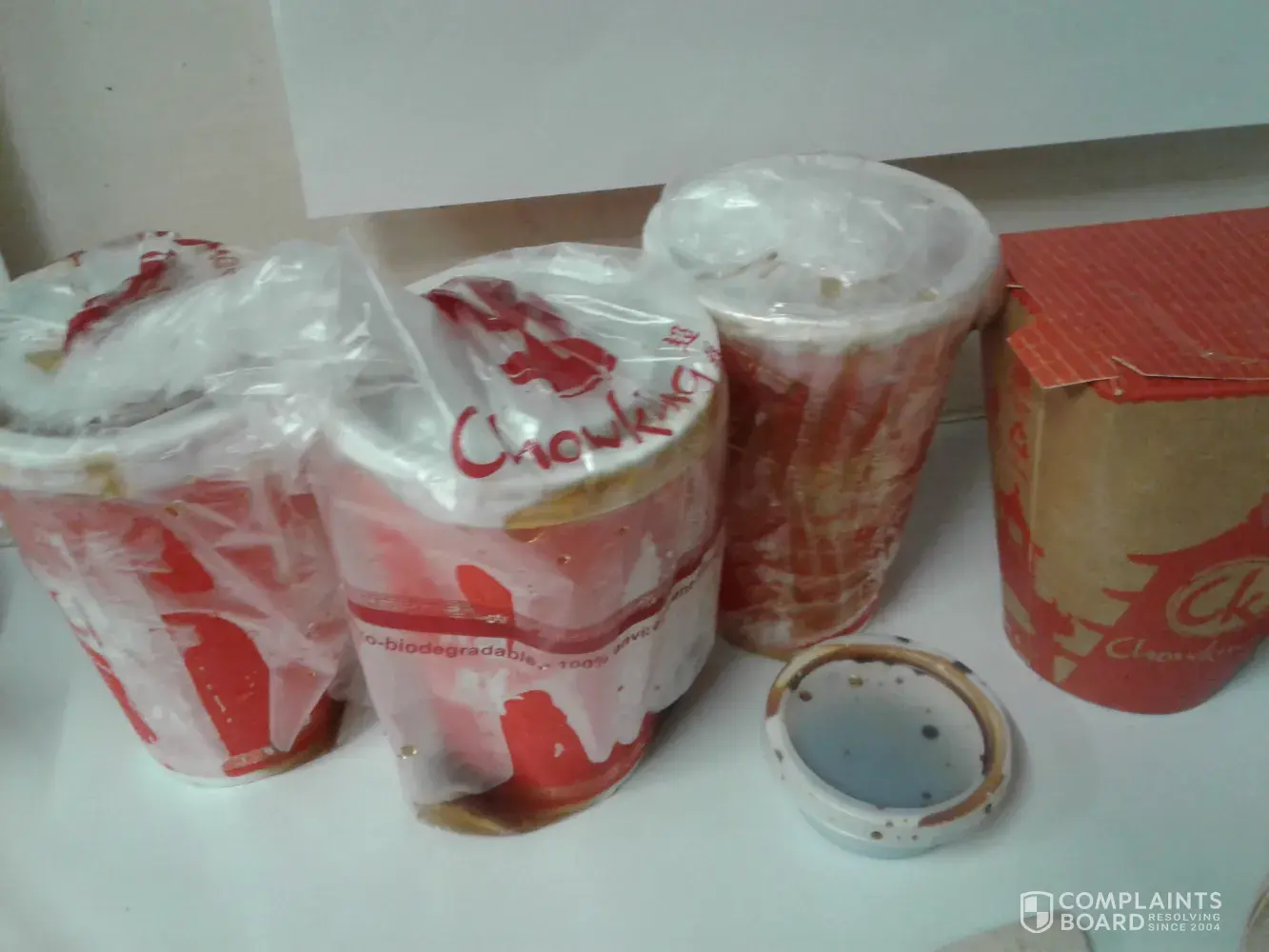 Chowking pork chowfan na may kung anung ipis o kuto, delivery na sobrang tagal at dugyot na pag repack ng pagkain