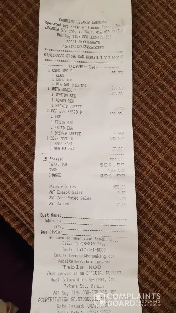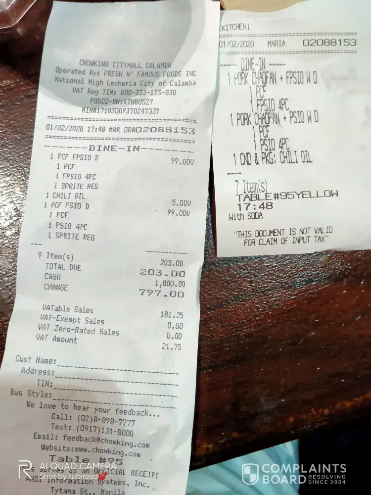 Share ko lang naging experience namin kanina sa chowking balibago branch. By the way Regular customer si papa ng chowking. A bit dissappointed sa cashier na si Erica di ko alam kung tinatamad ba sya mag take ng order or ewan kahit mag additional order lang ako ng tofu at wanton dahil walang kangkong. Pero bago yun nagtanong ako sa may senior cashier kangknong wala, ok so umalis ako sa pila tofu na lang orderin ko request ni papa, nagtanong ako sa senior ulit kung ok ang tofu and yes available daw... so nag wait ako sa senior lane dahil may mas nauna sakin nakita ko open ang kaha ni erica so dun na ako pumila, di daw available ang tofu sabi ni erica so di na ako nag order kasi ayaw na ni papa, nakakainis kasi available naman sabi nung nasa senior lane na cashier tas pag dating kay erica hindi available? So Who's telling the truth or di lang alam? Di na kami nag order kumain na lang kami, Nag tanong si papa sa isang crew waiter na si bryan kung meron tofu nagtanong si bryan sa BOH yes available daw so ibig sabihin may mga Front Liners na tinatamad mag basa ng post shift kung may note/remarks na 20% of our item is hindi available today, hindi marunong mag tanong sa kitchen kung available ang nasa menu walang kaso sakin kahit talikuran niya ako for a minute just to clear na available ang oorderin namin. Nag tanong ako for the last time bago kami umalis kung available ang tofu sabi ni jasmin na huling napag tanungan ko hindi din daw available sinabi ko kakaask lang namin sa waiter kanina meron daw so nag tanong si jasmine kay bryan na napagtanungan namin confirmed from him twice na nagtanong sa kitchen na available ang tofu then we leave. Currently Working din sa isang food establishment and alam ko dapat alam ng nasa FOH kung anung available at hindi dahil sila ang nagtatake ng order, suggestive selling or up-selling man yan, kung di sigurado sa item walang masama mag tanong, 2 staffs na ang napag tanungan and same answers nakuha ko and same correction from the waiter na available ang product. Pano na kung may store audit or surprise visit from big boss at masaktuhan magtanong kung magkano ang target sales for the day or mag sample order but the item is undefined kung meron or wala.. additional order ko maybe a bit small pero dagdag sales yun and every transaction counts. I'm not asking for anything in return. I just want to share my worst experience handled by front liners..