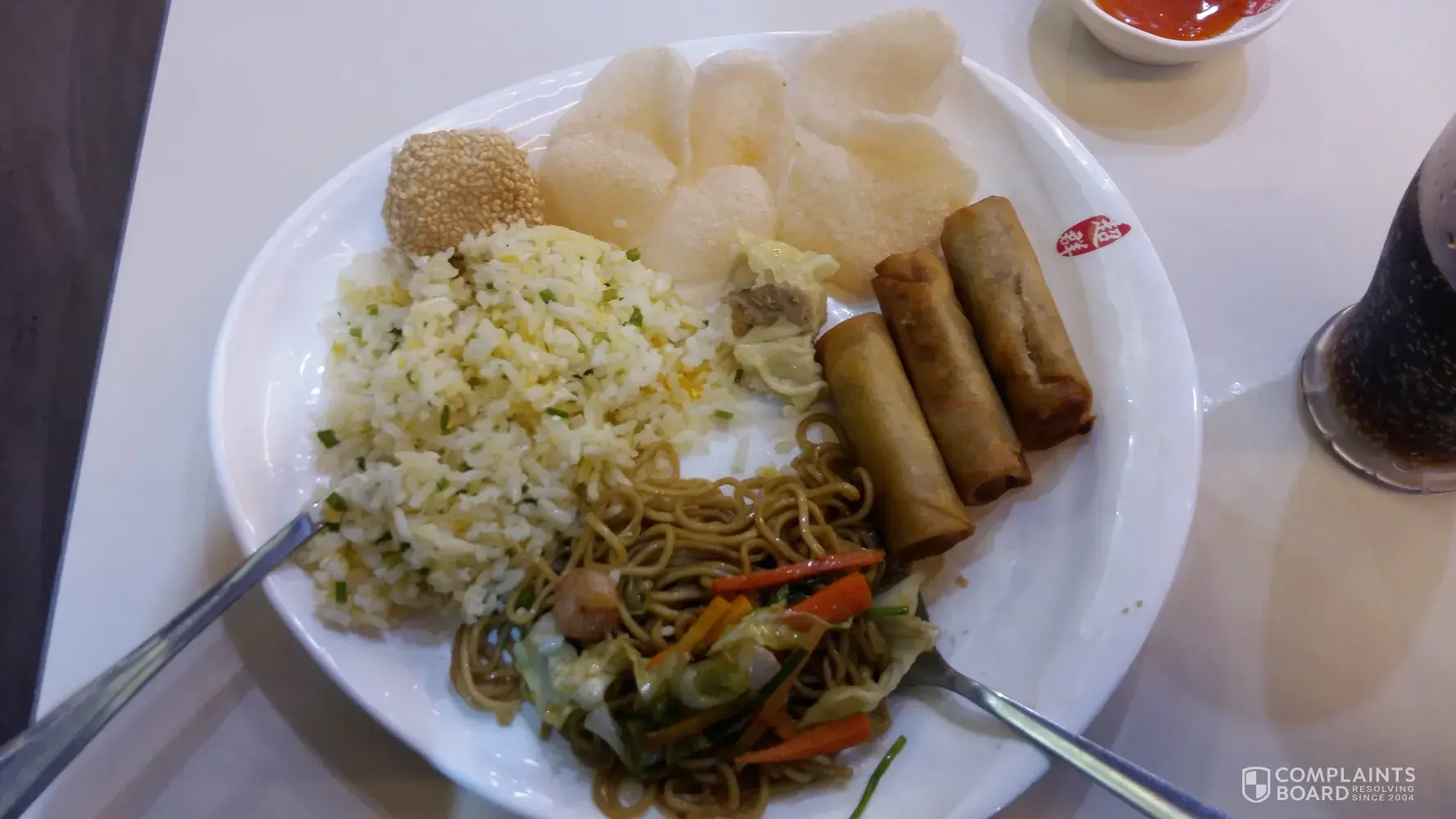 2- chow fan, and 1- yang chow and asked the cashier how long would it take, and she said it would be 10-15minutes for all the orders. About 10 minutes the chow fan arrived, but Yang chow took about 15 minutes more, my companions were already finished with their food, and I have many time followed up my order to the staff and lastly to the cashier. Finally my order arrived already in a take out bag. We'll i did not eat my order and just cancelled my order.