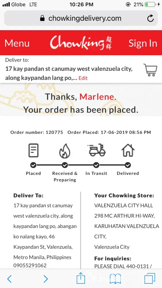 I'm Marlene Bernal, order number ko po is [protected]. Irereklamo ko lang ho yung ugali po nung nagdeliver samin nung food. Nung tumawag po siya saken tapos nagtanong about sa address, sinagot ko naman sya ng maayos tas ang dami niya ng sinasabi. Kesyo matataas na daw yung mga house number dito sa kaypandan, eh dati na kong nagpapadeliver ayun yung address na ginagamit ko wala namang nanggaganyan sakin. Nahahanap naman nila agad yung location. Pero kung ano ano parin sinasabi niya, kaya para matapos lang sinabi ko na aabangan ko nalang sya, tas bigla niyang sinabi na ang gulo ko daw. Tama ba yon? Tapos pagdating dito, sinigawan pa ko na "ang layo naman ma'am, sabi niyo pabrika" eh likod naman talaga ng pabrika yung tapat namin. Sya pa yung galit talaga. Tas pinipilit niya na hindi daw 17 yung address namin. Gusto ko na nga ipakita yung meralco bill para lang masatisfy sya eh. Sya pa talaga yung galit. Tas pagkabigay niya ng foods, nagdabog pa. Dinabog yung cover ng carrier. Grabe. Hindi na nga marunong itrato ng tama yung customer nagdadabog pa. First time ko makaexperience ng ganito sa chowking delivery. Pakiaksyonan ho. Ipafollow up ko ho ito. Btw, pagdating nung products, yung drinks ho tapon tapon na.