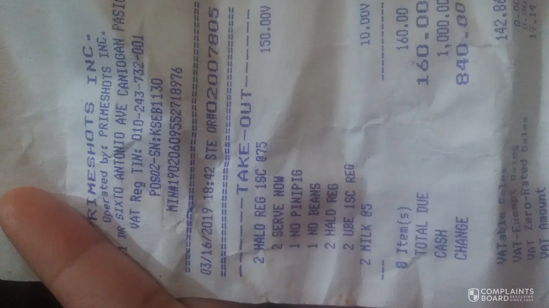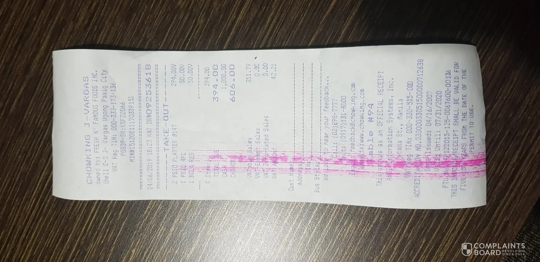 Attached here is the receipt and the photo of the food we ordered from Chowking.