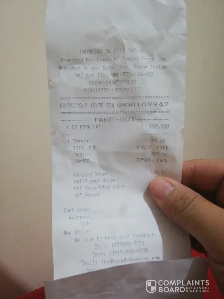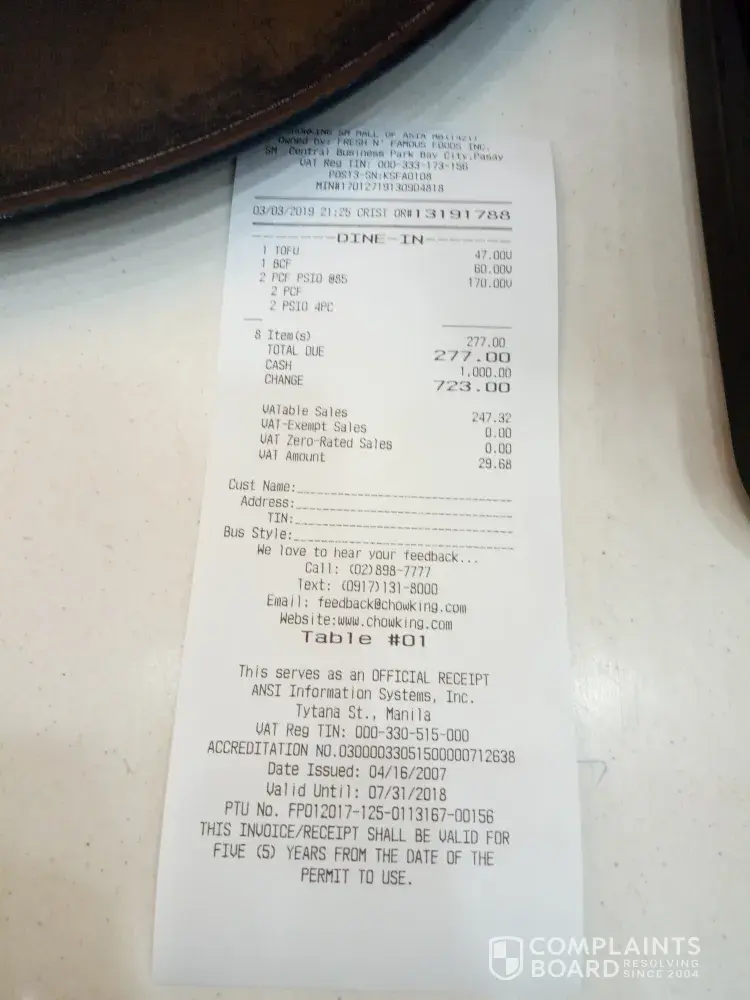 Chowking Complaints Page 42 of 62