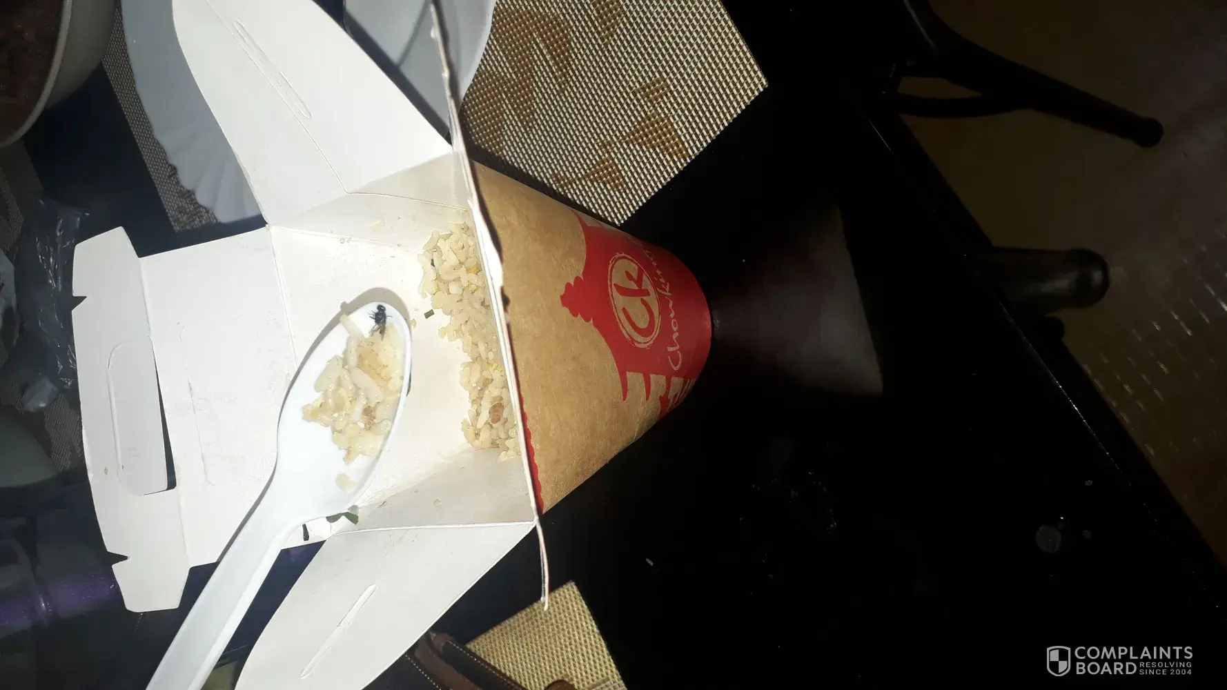 Attention Chowking Timog branch! I was frustrated on your service today! My mom bought 1 pork chaofan on your branch this evening for my 2 kids. When they arrived home, I fed my them, suddenly I saw fly on the pork chao fan! Look! Imagine that! Dalawang babies ko ang kumain nun then nakita ko may ganun pala! Nakakainis talaga. Ang mali lang ng mom ko hindi nya natago yung receipt. Hindi naman ako magcomplain if ok yung service. Do something about it! Timog branch, nakakagalit!
