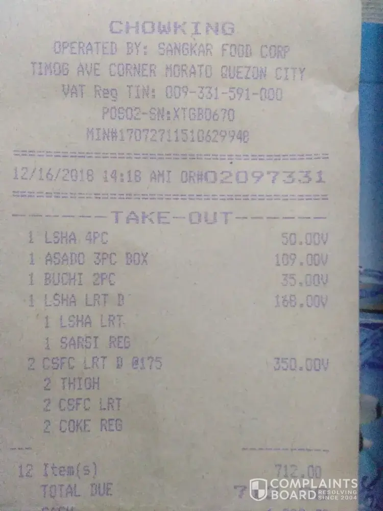 Good day, I am one of your customer last week, bought a chopseuy rice thru delivery (catered by chowking paco - my receipt was lost, so I was not able to attached it as a proof of evidence, however, I believe recording from the call center would also be considered as a proof. Anyways, I wrote this letter to inform you how disappointed I am from the food I had received that time because, upon openning the rice, I saw a died small creature (maggot like) mixed with my rice (pictures are attached in this email). I did not report immediately because during that time, I am so hungry, tired, mad and so busy that making another phone call would consume my time.