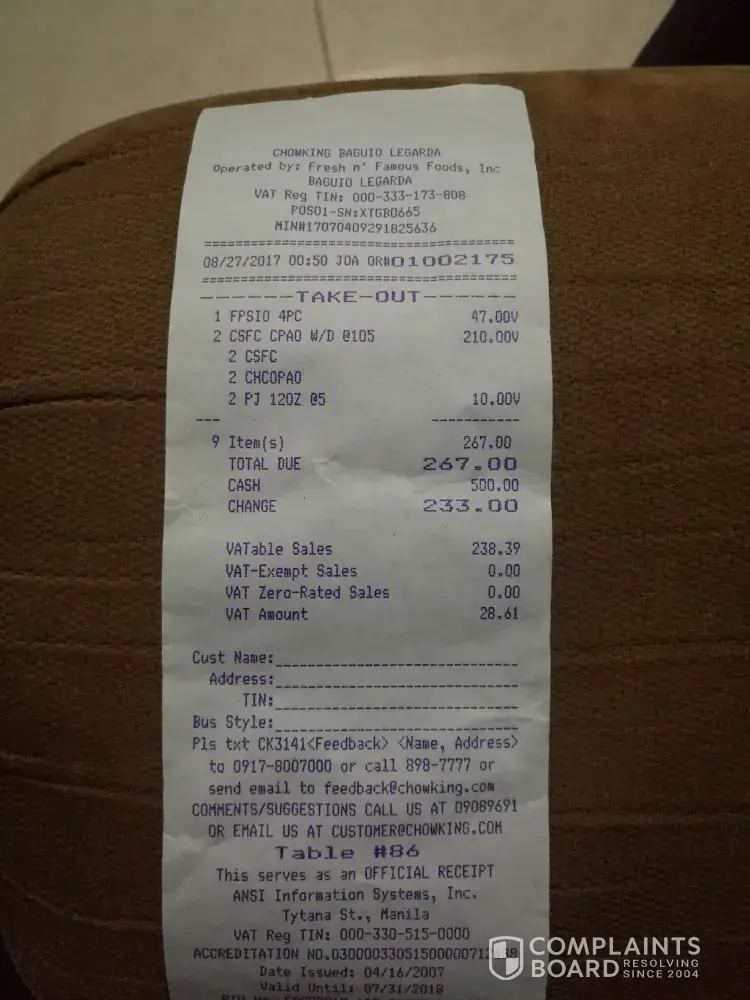 Chowking Complaints Page 57 of 62