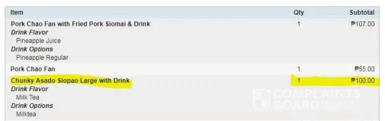 I ordered a meal which is for siopao and milktea. It was supposed to be 100.00.