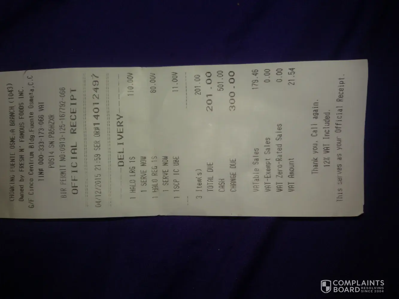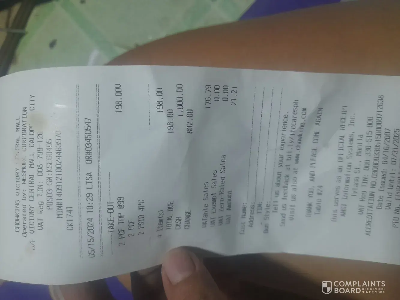 I just want to have the attention of the operation manager of chowking dimasalang.