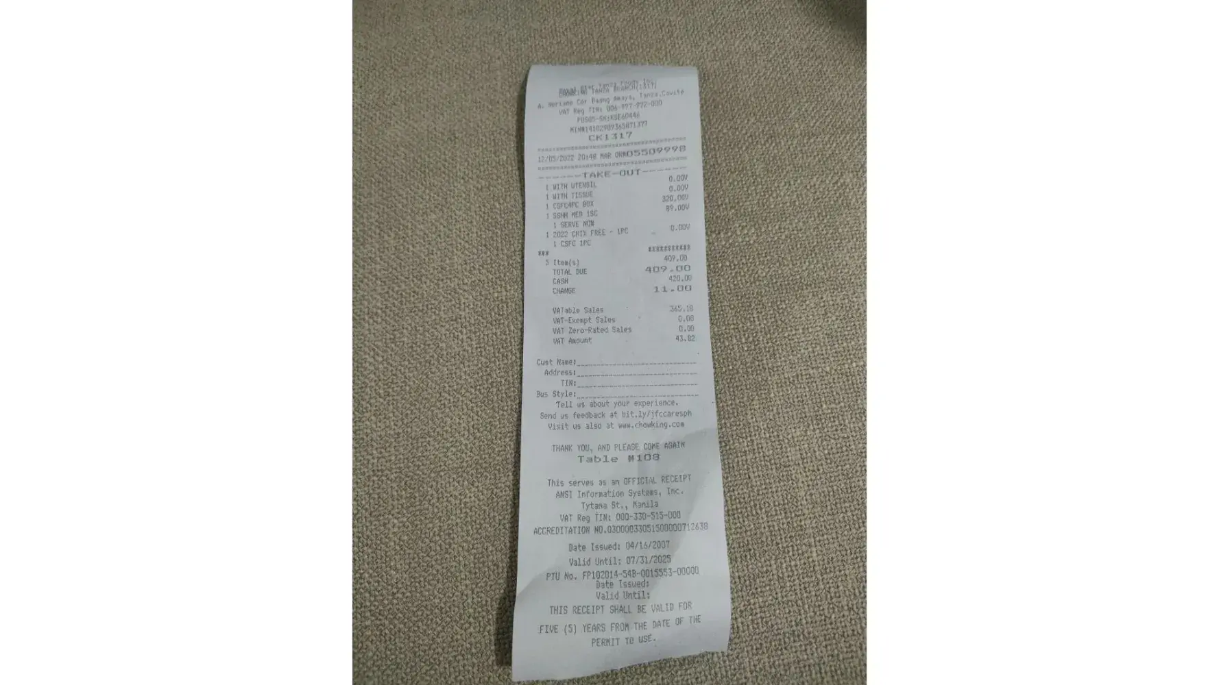 Hello good day. It happened yesterday, October 15,2022 nasa cashier kami 12:56pm something then nakuha namin order mga 1:20pm up like that.