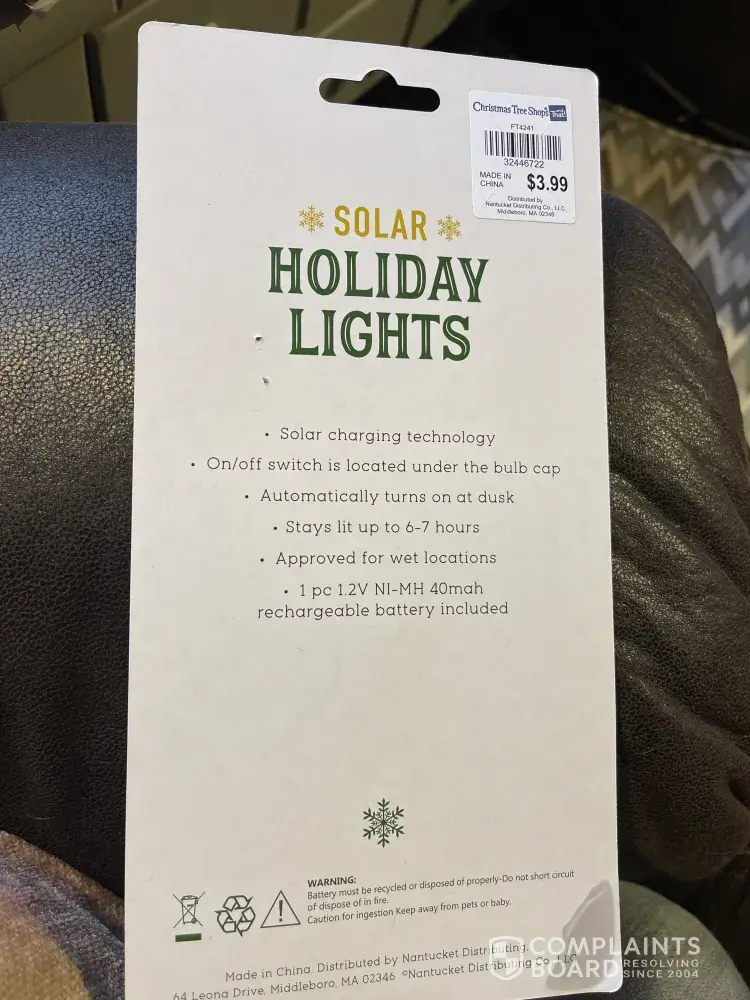 - Christmas Tree Shops's complaint resolution process is inadequate and ineffective. The support team lacks customer service skills, training, and resources, resulting in only 0% of 0 complaints being resolved.