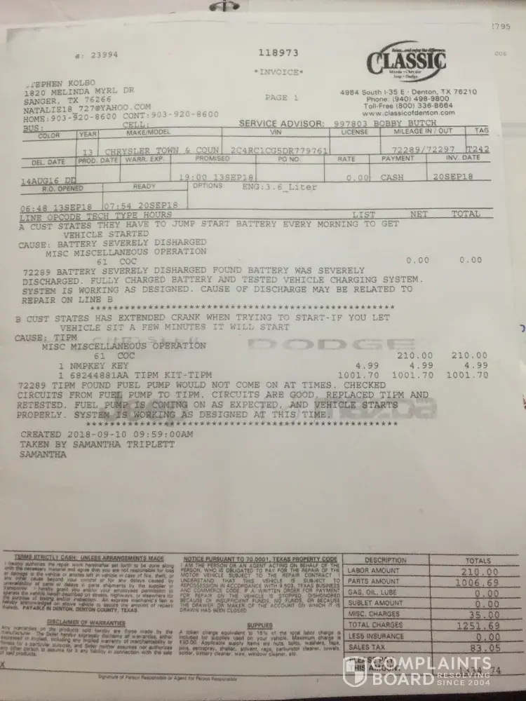 We would like to just hand the keys over to the van and have the amount we currently owe, wiped clean. My request may seem over the top but at this point, we are honestly exhausted from battling this out with the dealership and appalled at the number of issues a three-year-old $45, 000.00 vehicle has had.