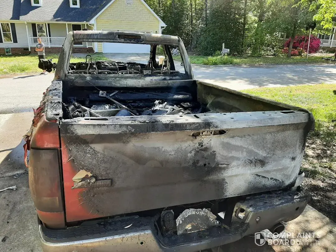 I came home for lunch. My truck was parked in my driveway. About 30 minutes later a neighbor range our doorbell to inform us that my 2017 Dodge RAM 1500 truck was on fire in the rear bed area.