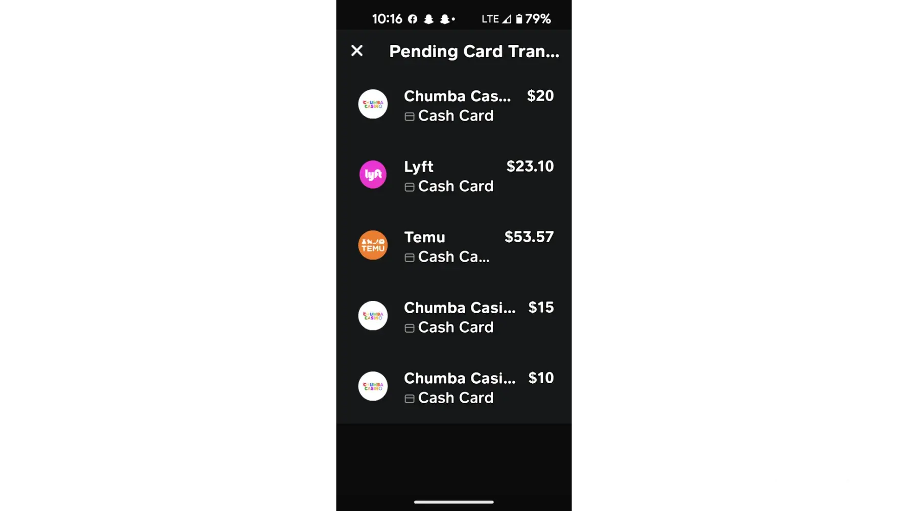 Hello today on 6/15/23 around 5AM There were a few transactions to my CASHAP CARD, they were fraudulent. I will list the amounts below: