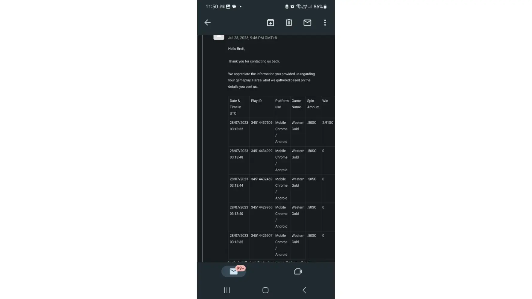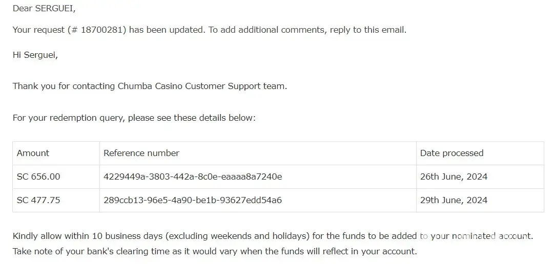 On Monday, July 24, 2023 at 04:03:46 AM CDT, Chumba Casino Support wrote: