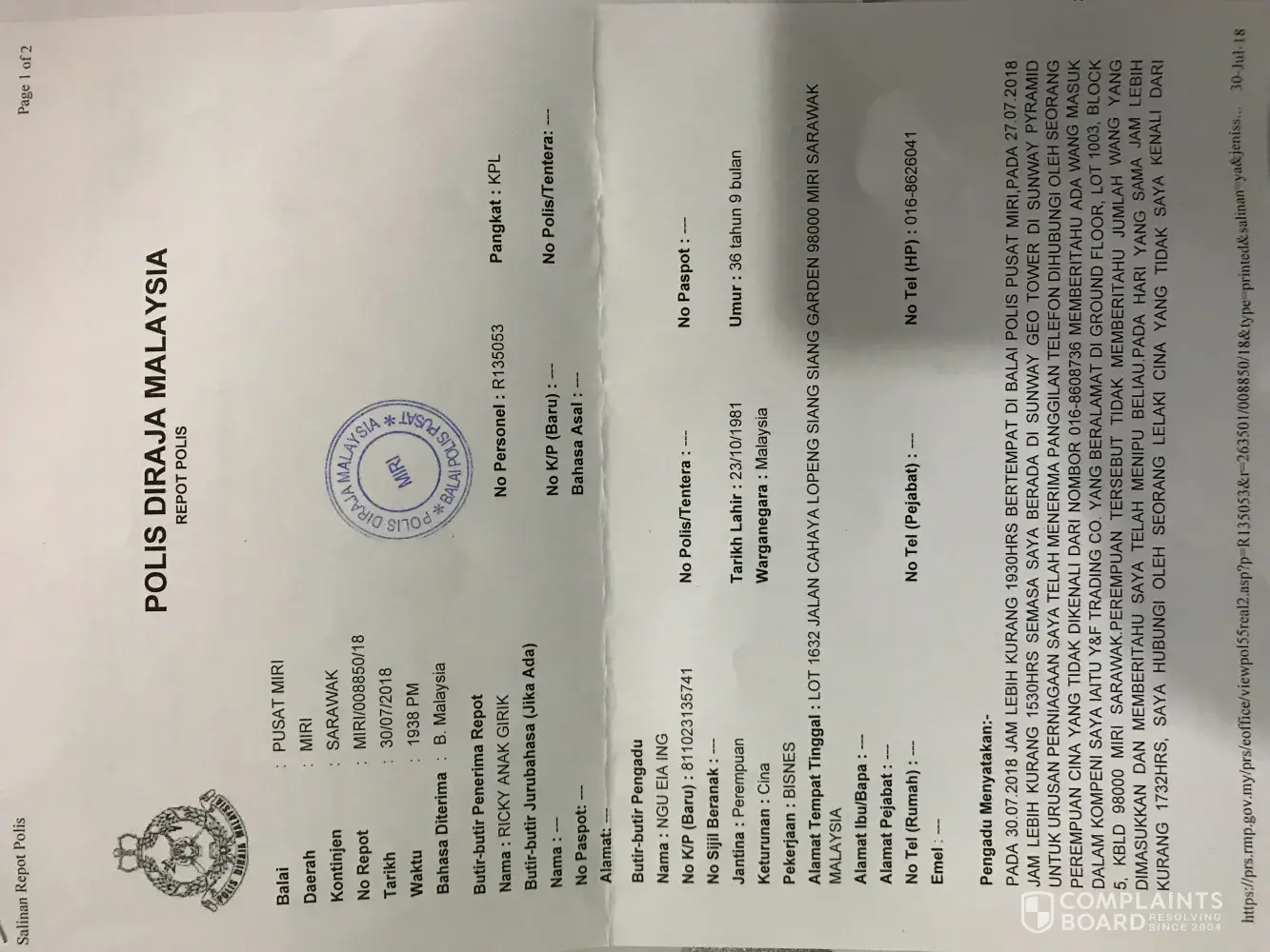 last week i have call in customer service center to check further. the officer didn't provide me any good solution . she said they will investigate and escalate to management or department in charges. she give me my Report no : 1-[protected].