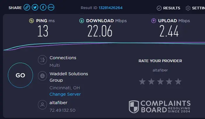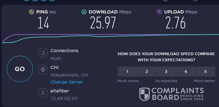 I was a victim of bait and switch by Cincinnati Bell. Claim to give you 30MBps internet. After switching from 22mbps, i now only get most 11mbps. After talking with service, they informed me there is a congested hub in the area..What? and you couldn't tell me before switch. They informed me that they would not know until hook up---fake ads