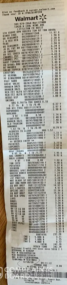 Purchased 12/28/2020 at WalmartSuper store, $4.83. See receipt and photo of package with bar code on it.