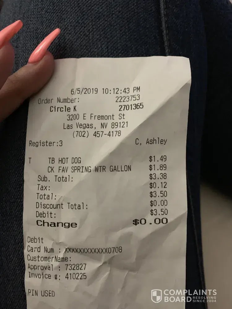 Cashier was very rude. What's on personal call. Did not greet customers. Did not tell me customer their totals. Very very very unprofessional. I have been shopping at the circle k for many years and with the employees and management they have now is awful. It's the only store in our small town. Many people all riding a few extra miles to shop at your competitor.