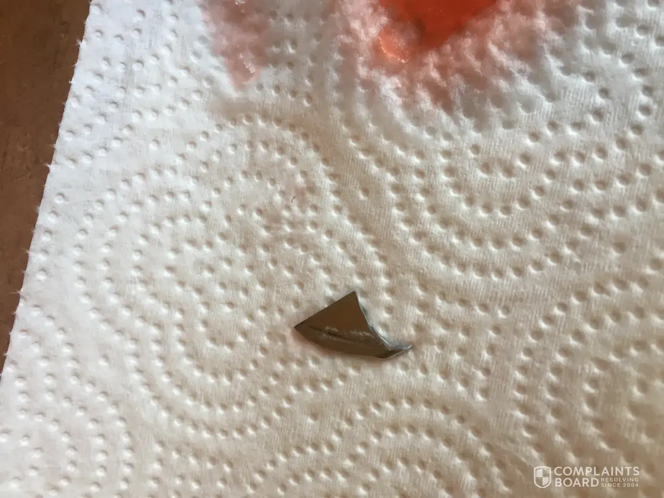 I got home and noticed there was a piece of metal/mirror in my cup . I took it back they only offered a replacement. I asked them to inspect The machine and give me an explanation as to where it may have come from. He said most likely from the stack of cups - Disappointed and scared a child may have gotten a piece . I have included a couple of photos . Circle K - how is this possible ?