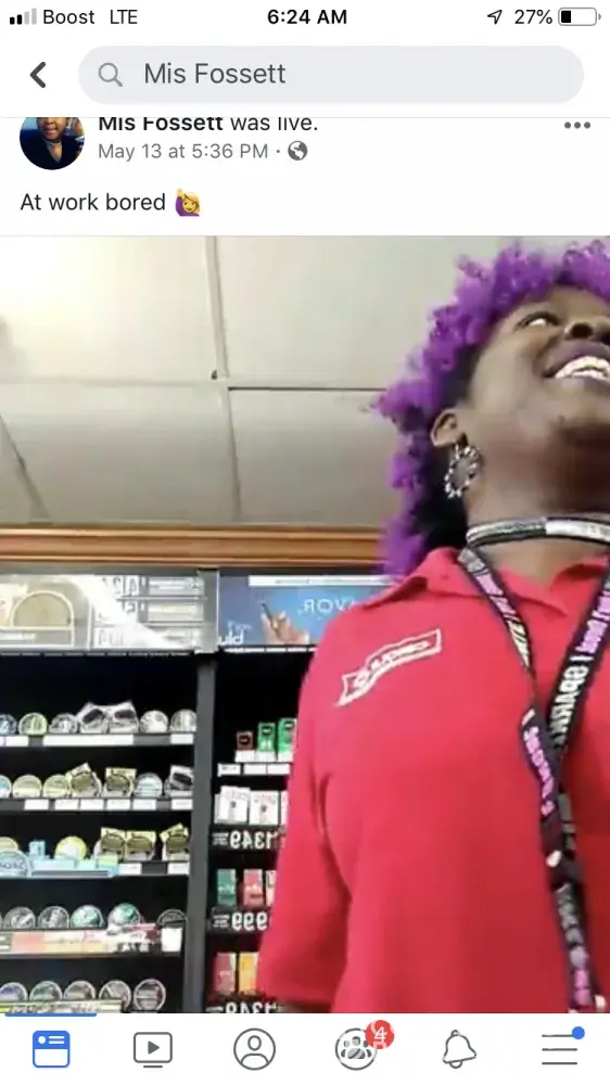 Every time I come in the store she is on her phone loud talking. Never paying attention, she's always being rude and trying to sell every customer that walks in the "paparazzi" jewelry she sells. It gets annoying when I come in for gas and coffee and every time she is always on her phone taking pictures or live on social media. I have already complained to the store manager and nothing so now I'm online complaining if something isn't done to solve this I'm forced to use another gas station and so will all my friends and family. It's ridiculous to get hassled by the homeless for money then u wall into the store to purchase stuff and you're being hassled by an employee that's loud rude and soliciting her jewelry