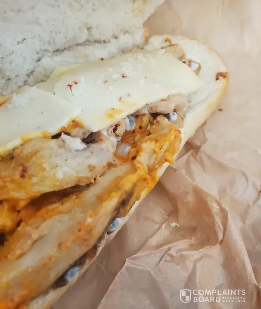 On December 14, 2021 I bought a boom boom chicken sub from the circle k at 5202 W Sligh Ave, Tampa, FL 33634. I took a bite of the sandwich and felt the texture of the sub was off. As I was at my desk working, I didn't check the sub before I took a bite. When I looked, spots of mold were all over the sub. It goes without saying but there is no good reason...