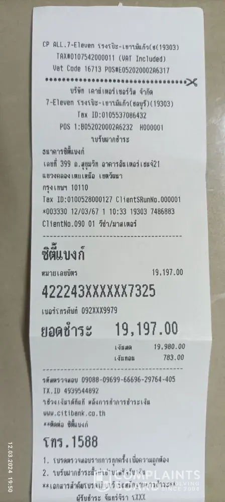 Citibank Citi Card Thailand, last 4 digit 7745,7325