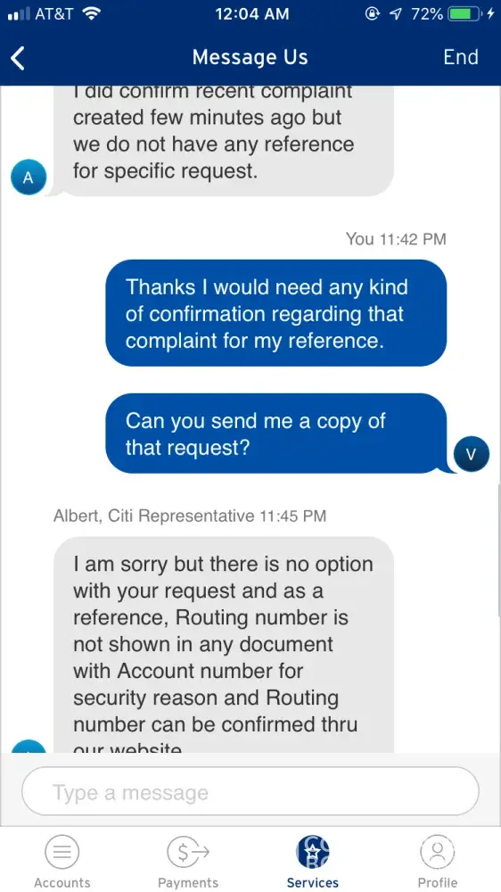 I just want to convey a message that - YOU ARE USELESS! You provide the worst service and the worst experience! You just couldn't help me setup a direct deposit with my new employer. That was a shame right. All I needed was just a supporting document or reference letter fax or any kind of prof or an email with my basic information for my employer to verify and then confirm the direct deposit. If you are not able to provide my basic information to myself then what's the use of you existing and serving your customers. On top of that you lose business and customer for which you don't even bother about. Since you failed to provide that I'm going to setup a direct deposit with my other bank. Again, you are so useless or worthless I'm surprised how I got hooked up with you for the past 5 years being a fool. I guess I'm the luckiest person ever who never actually got a chance to work you about anything. I just want to close my account with Citi.