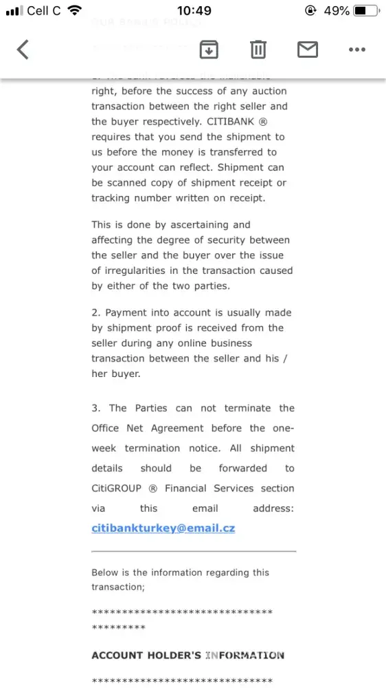 It's been almost a week now she sent me an email stating that Citibank approved a payment and all information about the transaction
