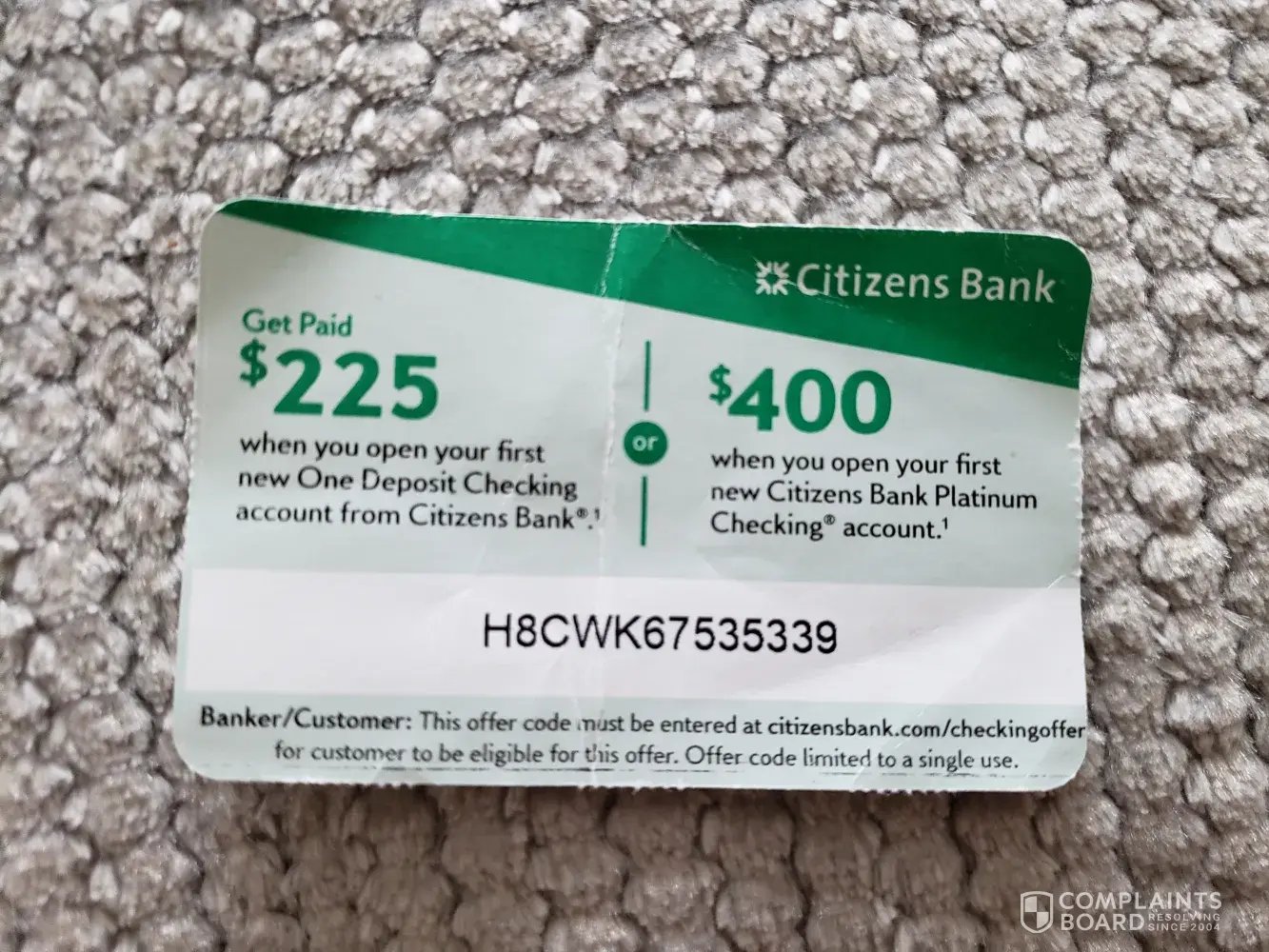Opened A NEW account back in Dec based on a promotion of $400 after 90 days. Today nothing, called them and they said you have to make a direct deposit vs me walking into a bank and handing them a $25, 000 check. What difference does it make in either case money is deposited into the account. Citizens bank just used my money. Very misleading just to get new customers and use their money. Stay away there are much better banks out there that aren't out to screw you.