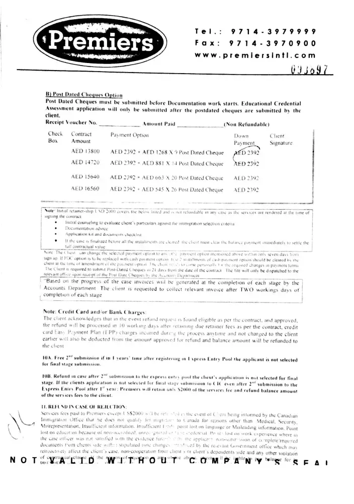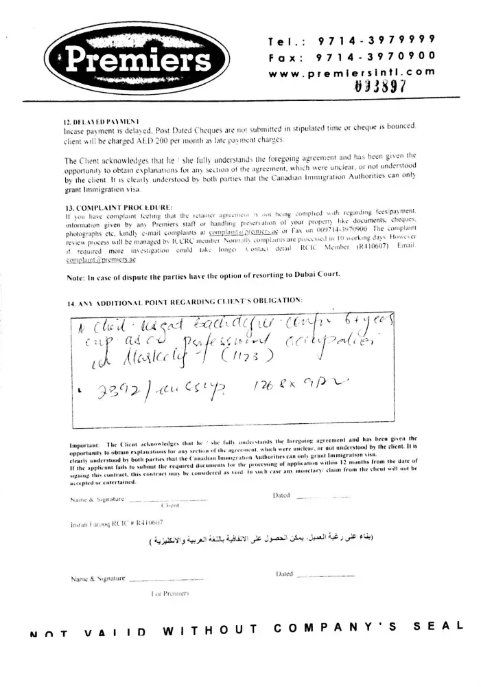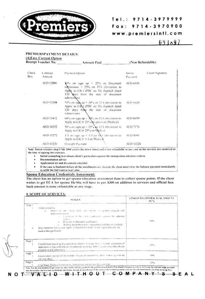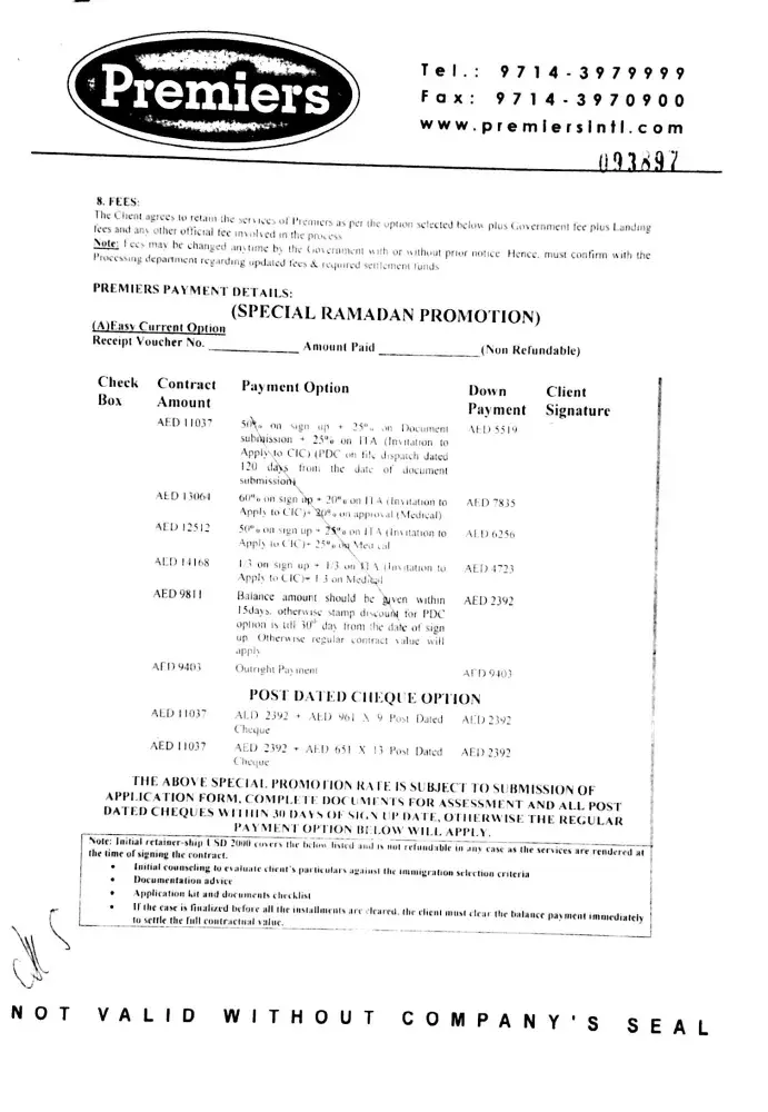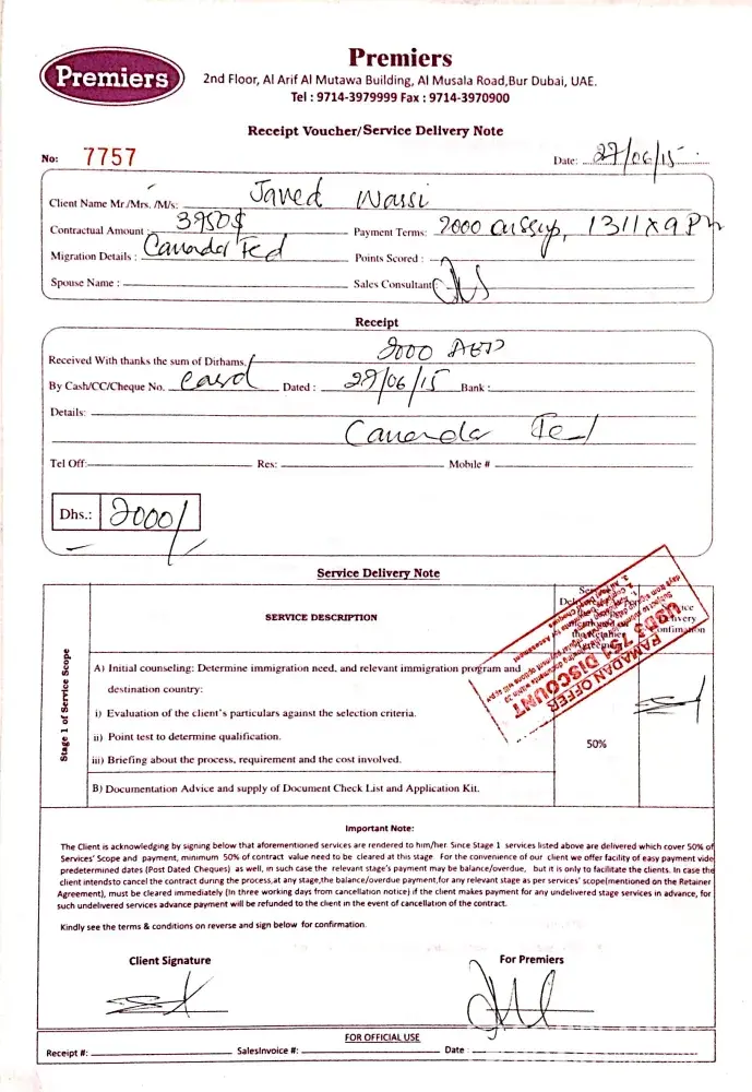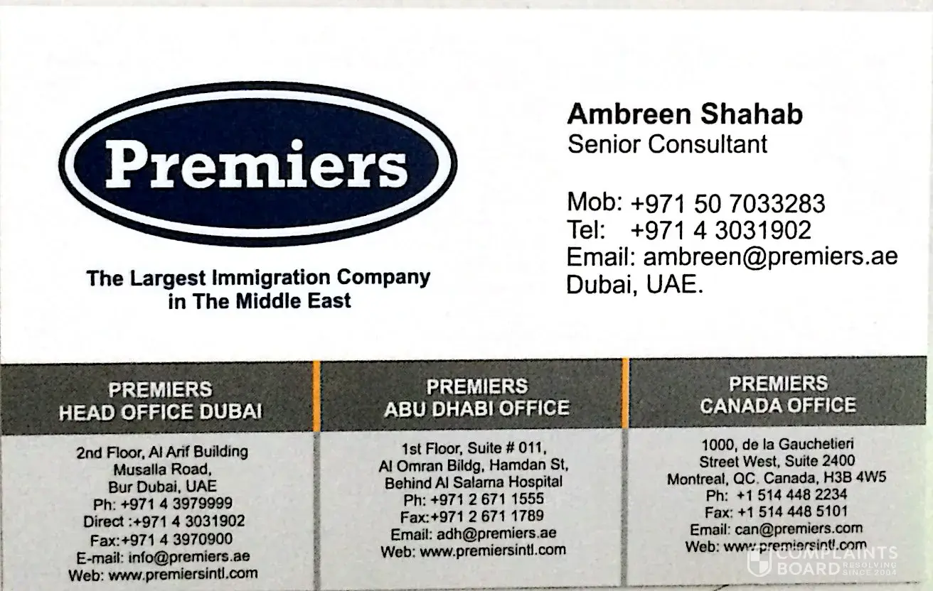 on 24-june-2015 i received a text message on my mobile saying canadian & australian immigration fast track ramadan offer at discounted price of 9000 AED till 27th june call ambreen on [protected] / [protected]. so i called and spoke with ambreen and fixed a appointment for 27-06-2015 along with my friend as he was also interested plus we will stand as eye...