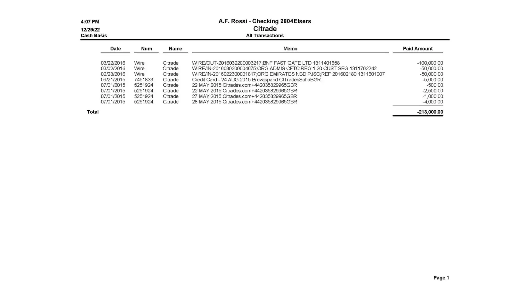 On the below dates, I wired the said funds to CiTrades. I requested several times to have money sent to me. CiTrades stalled and wouldn't send me any of my money back. I'm attaching bank statements reflecting the funds wired to CiTrades via Fast Gate LTD.