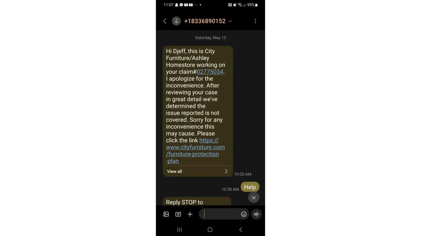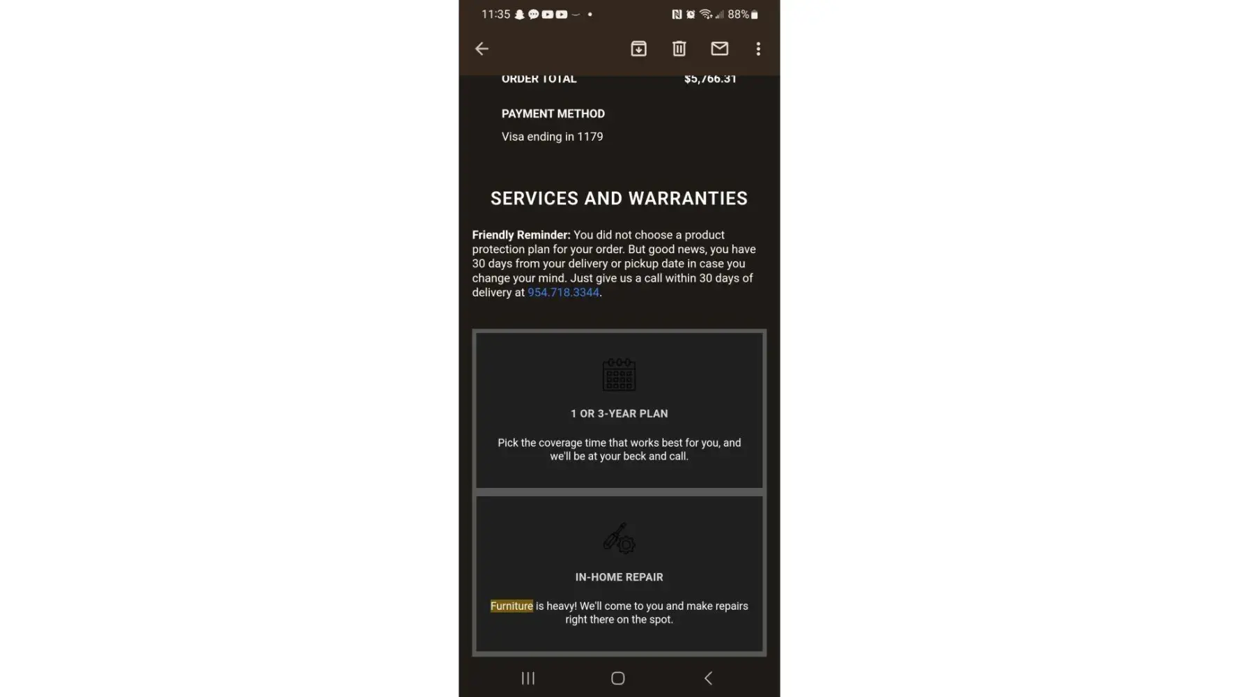 This makes no sense to me because you could have simply cut your losses, refunded my money, and instead of raising my blood pressure I would have a positive story to share with family, friends and neighbors. You could have sold the couches in your scratch and dent store and I would have likely shopped your store again for the dining room set that I am in the market for.