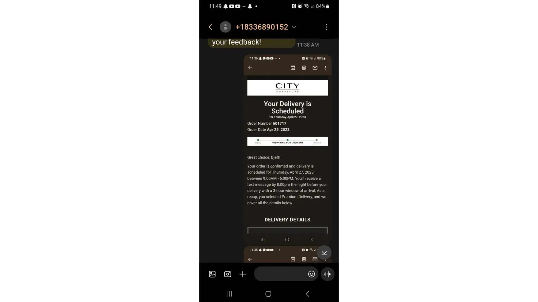 My wife and I bought a sectional sofa and loveseat in July 2022. The delivery wasn’t until December. I can live with that due to all the supply chain issues, but the sofa sectional was delivered in pieces and the loveseat was not what we were told it would be so we rejected delivery on it. We then ordered a recliner to replace the loveseat and our delivery on the recliner bounced around with no notification. My wife would check the website every now and then, only to find a different delivery date each time. We had it after 6 months and no complete set in our home. Your customer service team decided it was in your company’s best interest not to return our delivery fee of $180.00. So we’re out $180.00 for a mess your company created.