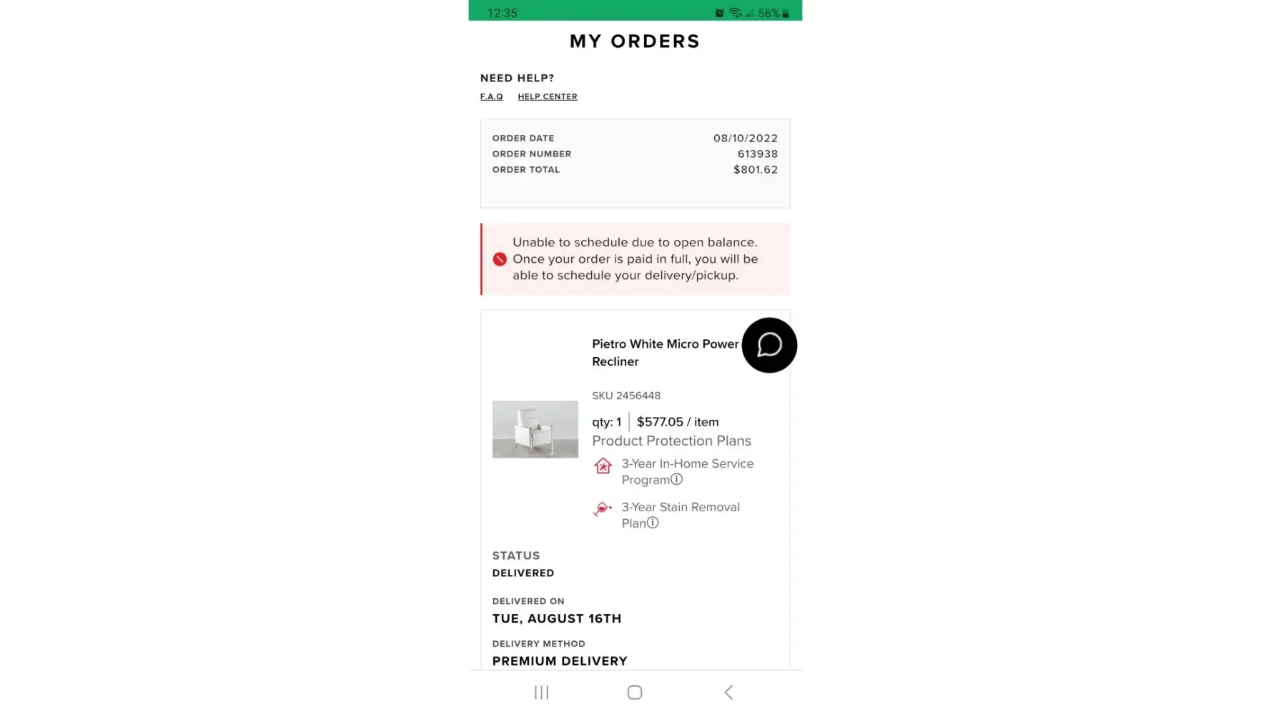 Here’s the real kicker it’s not even the one we choose they delivered the wrong reclining leather love seat. So now they say we can get the right one in a week and still zero compensation. We own 2 businesses and it’s just common courtesy to offer financial relief in a situation like this I believe. I did manage to get the delivery moved up to 10/22/22 Thankfully.