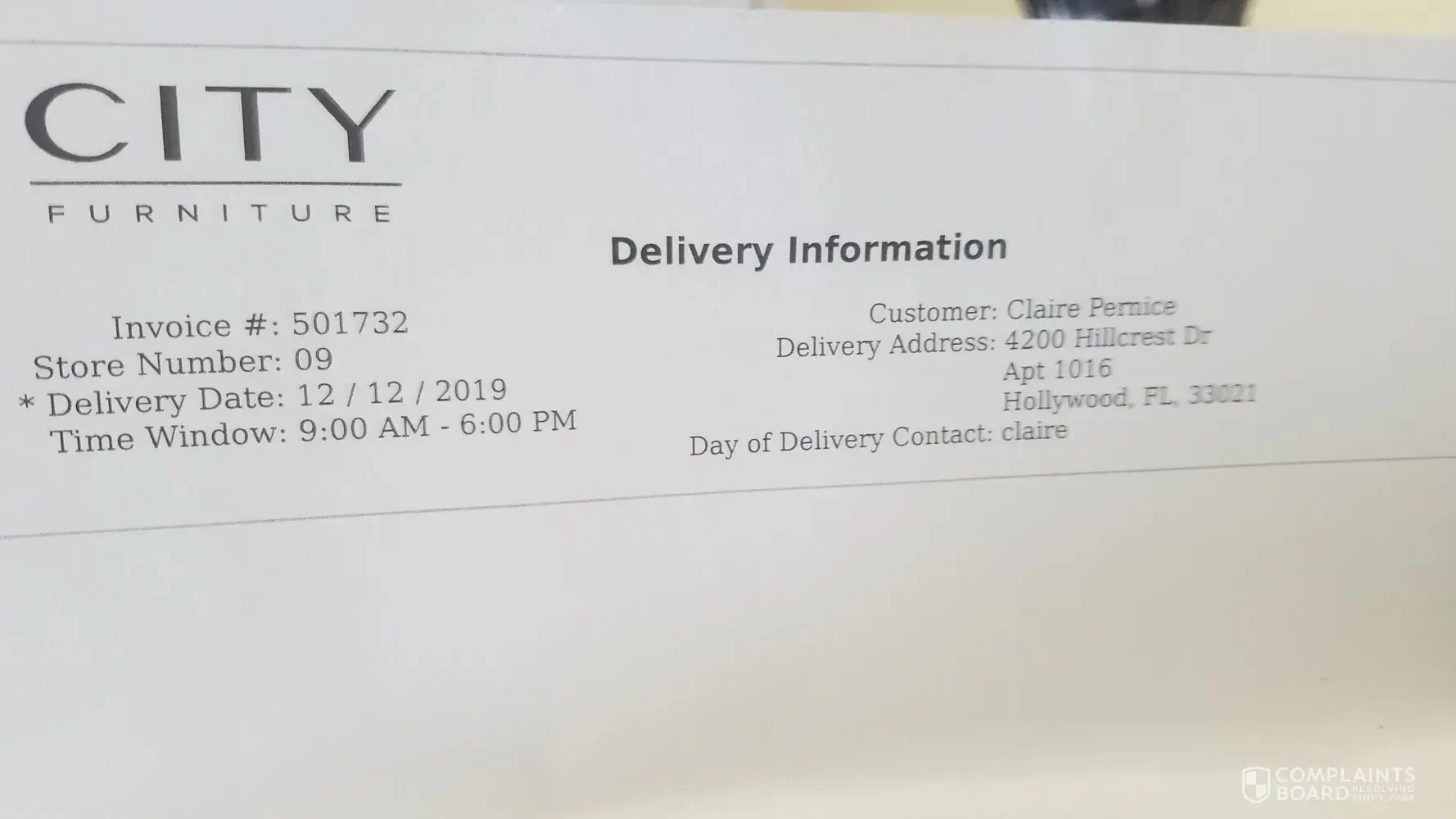 The last update is from today, I spoke with Marrietta who took my name and number and has indicated she is going to contact the parts department, and this is deja vue again. She further indicated what has occurred is not their fault but the parts department. But my question to you is, why should I hold them responsible when I bought the furniture from; City furniture?