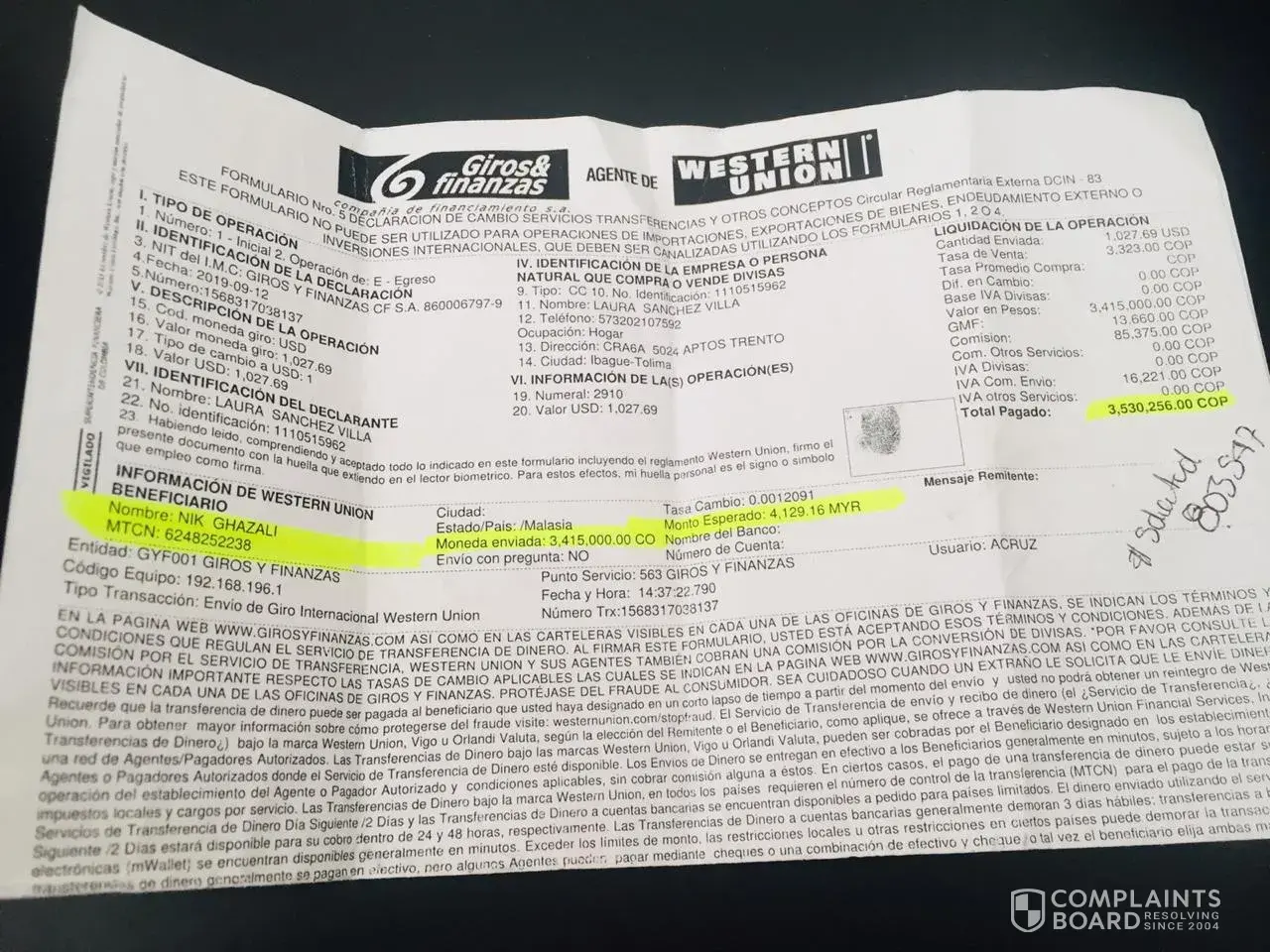 Then I need to know how many days I would have to deliver my package because to be paid for the shipment until they threatened me then I make a claim when my delivery arrives or I have to go to the authorities with my payment support because at the beginning it was 1200 USD so that they would send it to Colombia and then 1900 USD or else they would report me in the duanas.