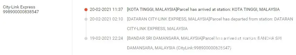 The item has arrived at Kota Tinggi Station 3 days ago (20th Feb 2021, around 11.00am)