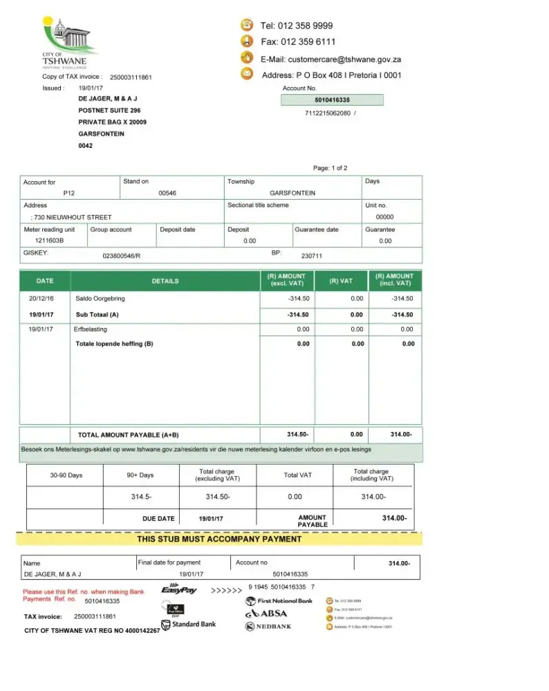 Read full complaintIs City of Tshwane Metropolitan Municipality Legit?