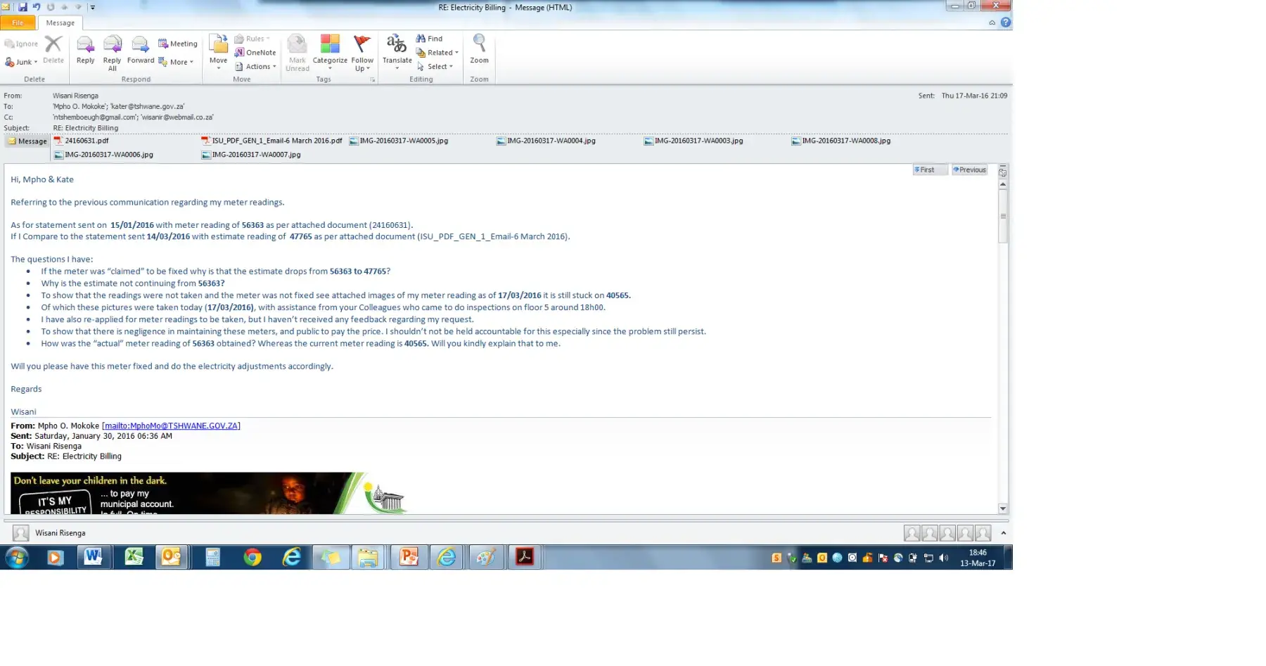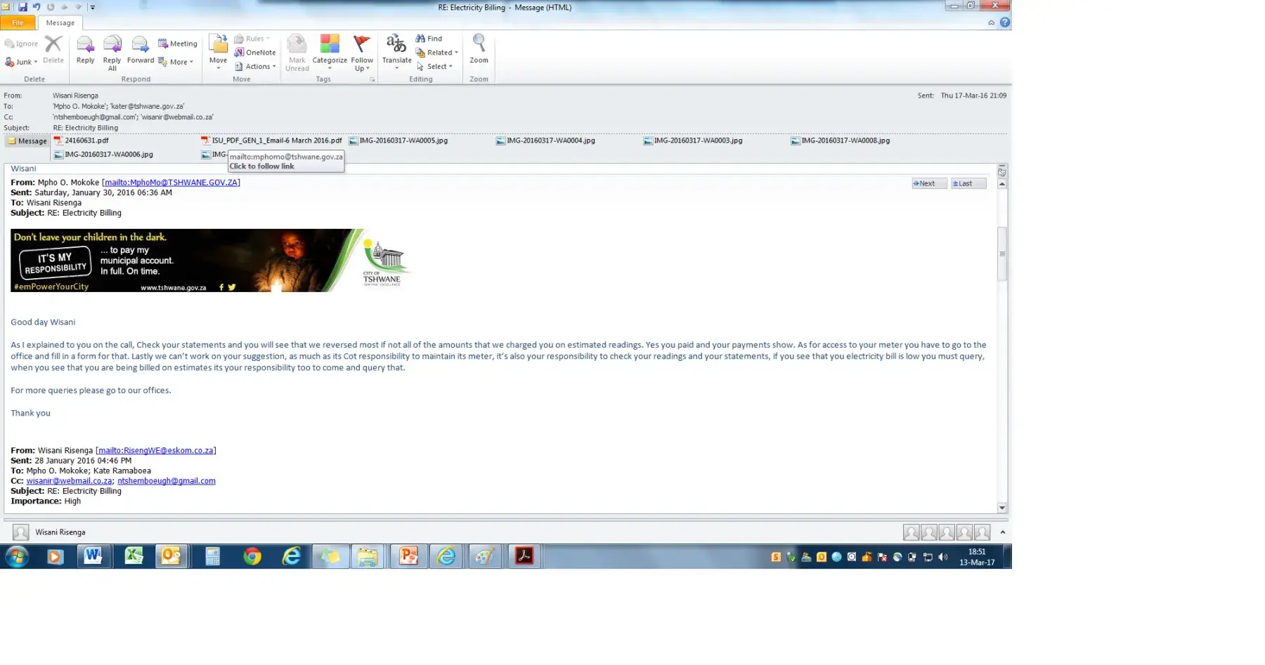 [protected]@tshwane.gov.za since the 19 January 2017 but I did