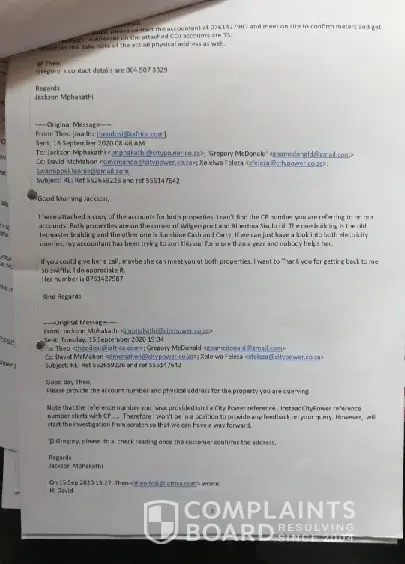 - City Power's complaint resolution process is inadequate and ineffective. The support team lacks customer service skills, training, and resources, resulting in only 0% of 2 complaints being resolved.