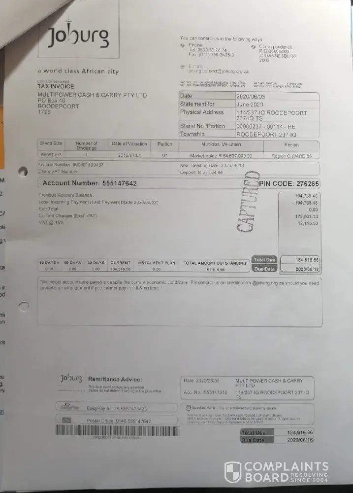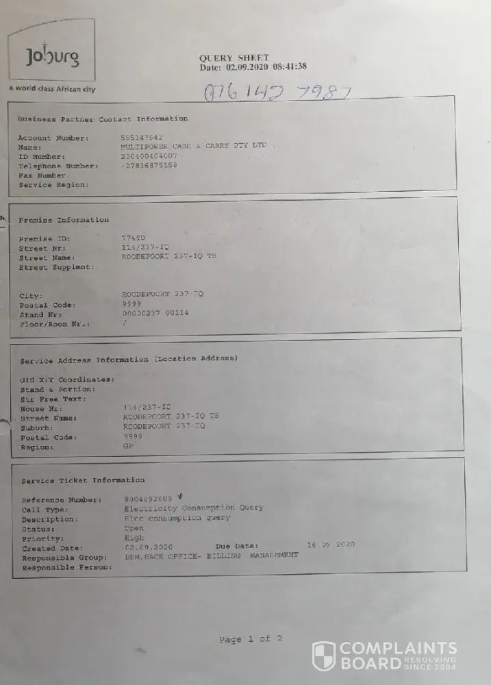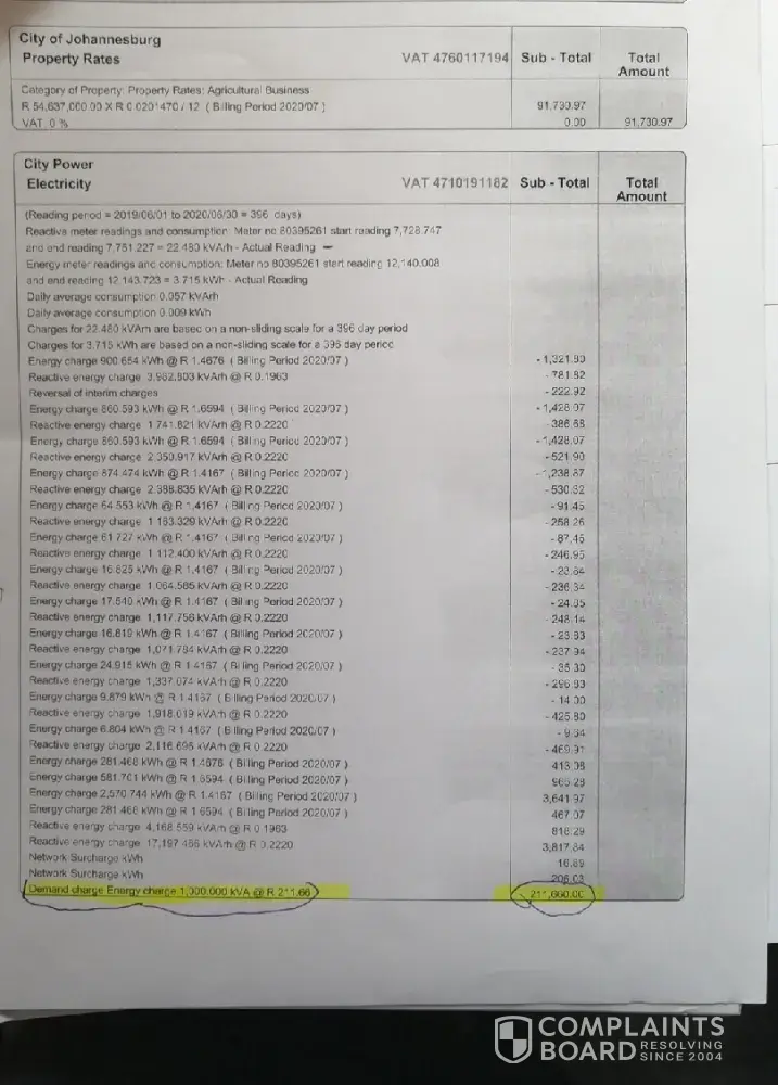Confidential Information Hidden: This section contains confidential information visible to verified City Power representatives only. If you are affiliated with City Power, please claim your business to access these details.