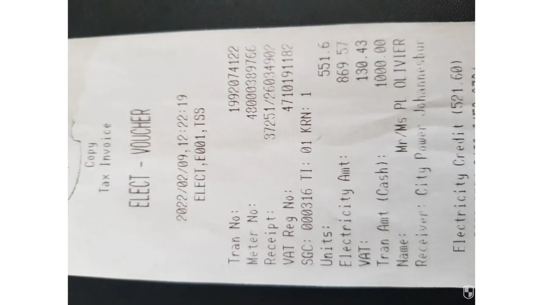 When we bought prepaid electricity in February through VENDOR X we got 551.6 units for R1 000.
